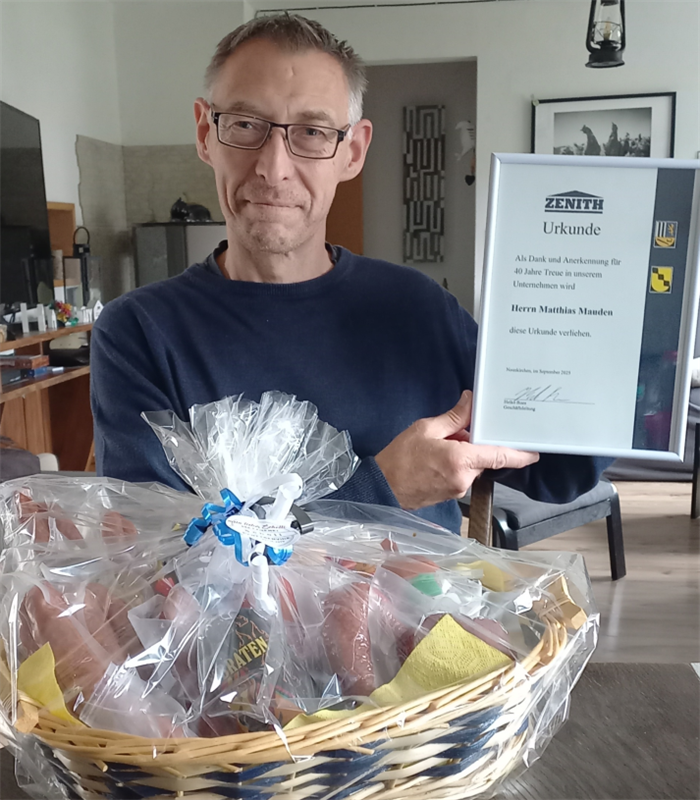Mr.Matthias Mauden現(xiàn)年57歲,在策尼特完成了為期三年的機械鉗工培訓后,便扎根公司。多年來,他一直從事液壓工程領域的工作,對液壓缸和振動器擁有深厚的專業(yè)知識。同時,他也積極擔任公司急救員,為同事的安全保駕護航。四十年的堅守,見證了他與策尼特共同成長的輝煌歷程。